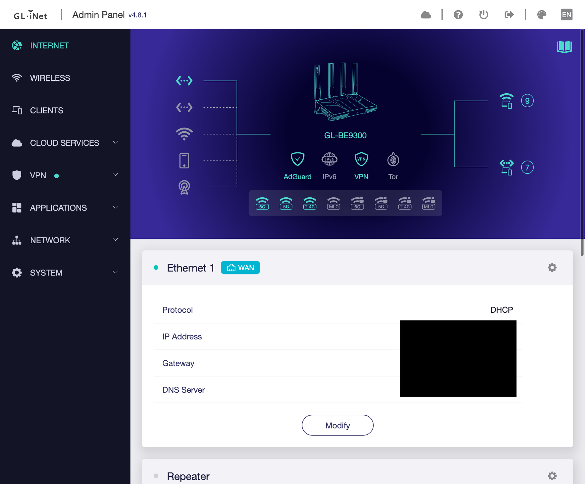If you're interested in networking, then of course you've heard of DNS blocking with software like Pi-Hole or AdGuard Home (AGH). In Flint 3, you could install Adguard Home with just one click in the GL admin panel. The default settings will let all connected clients use the default DNS server (dnsmasq), which then uses AGH as an upstream DNS server. However, you could also choose to bypass the dnsmasq and let all clients to directly use AGH. In the GL admin panel, there is also an option to redirect all unencrypted DNS request (port 53) to the Flint 3 itself.