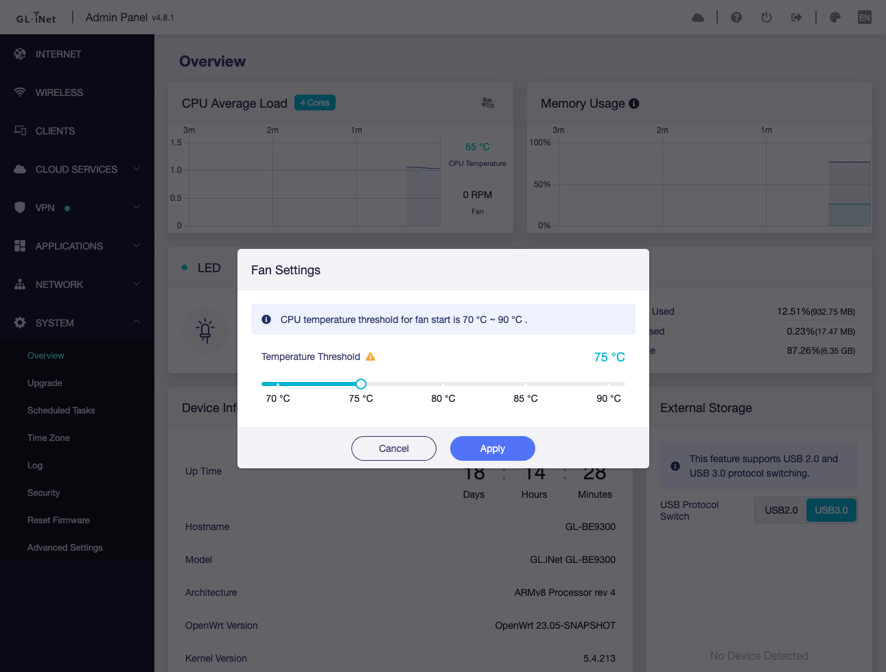 In an standard OpenWRT router, the interface (frontend/admin panel) is called LuCI. It is quite advanced compared to consumer router like Asus or TP-Link and I would describe it as not user-friendly. The GL.iNet team solution to this was to develop their own interface, which they called GL admin panel. The user-friendliness of GL admin panel is similar to any other consumer routers. It is really easy to use and configure. However, the GL admin panel does not expose all of OpenWRT capabilities.