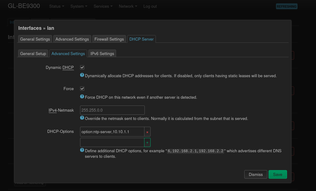 Adding NTP Server in DHCP Options via LuCI